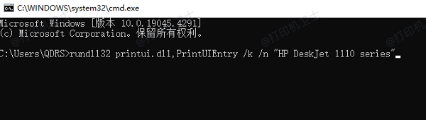 rundll32 printui.dll,PrintUIEntry /k /n "你的打印机名称",例如:rundll32 printui.dll,PrintUIEntry /k /n "HP DeskJet 1110 series"。