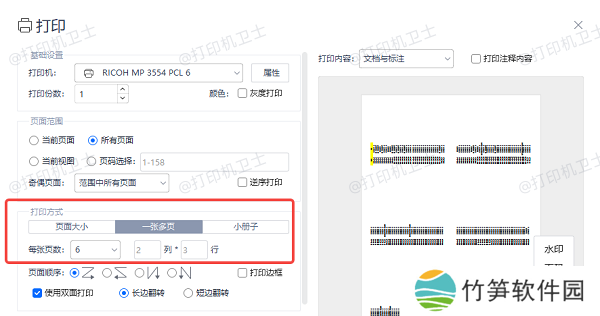 4、预览右侧会展示大致的打印布局。