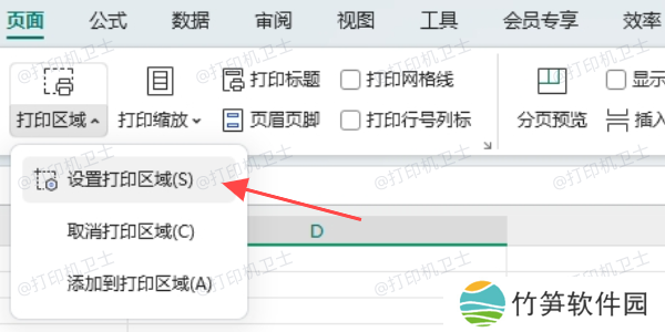 2、点击“页面布局”菜单下的“打印区域”>“设置打印区域”。
