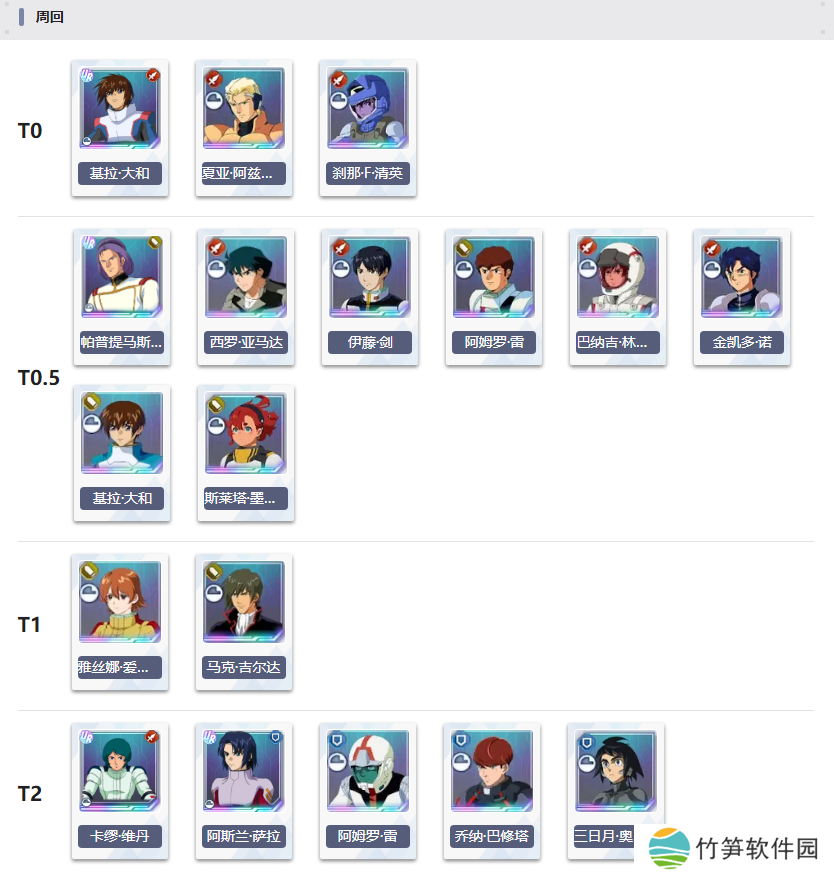 SD高达G世纪永恒手游已上线一段时间,相信高达迷们已经玩得不亦乐乎了,今天这篇攻略带来的是最新的角色节奏一图流,想要了解SD高达G世纪永恒中角色强度的玩家可以直接参考下图。强度将从高难和周回两个板块从T0到T2进行排名。