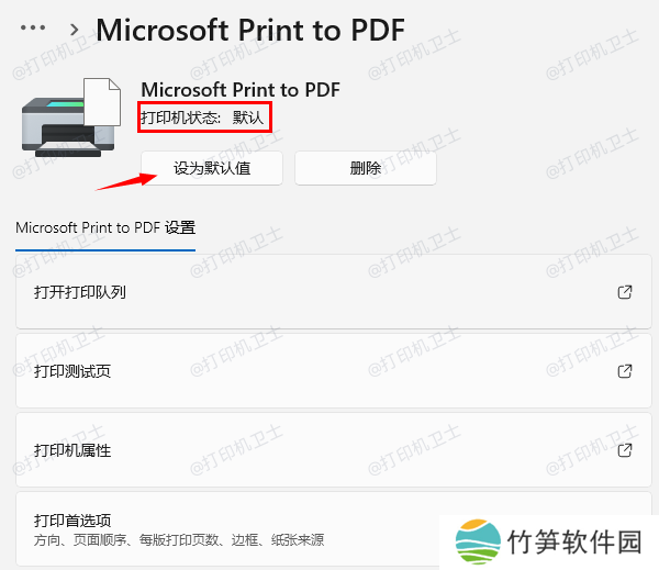 点击你的打印机图标,查看是是否为默认打印机,如果不是,点击 “设为默认值”。