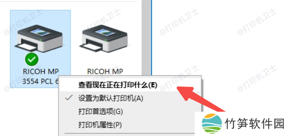 2、找到对应打印机,右键选择“查看正在打印什么”。