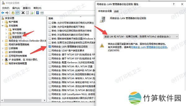 3、找到“网络安全:LAN 管理器身份验证级别”,设置为“发送 LM 和 NTLM - 如果已协商则使用 NTLMv2 会话安全”。