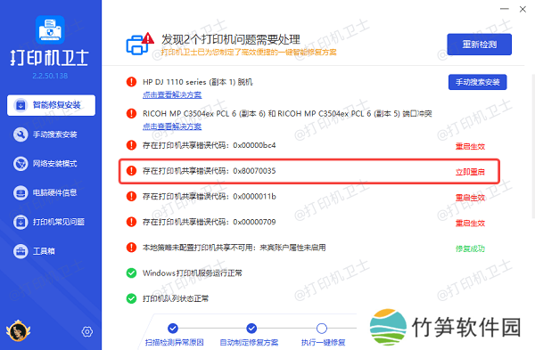 其次,如果你不熟悉网络设置或无法定位故障点,可以借助本站来快速检测并修复问题。它能够自动识别打印共享错误,并提供一键修复功能。