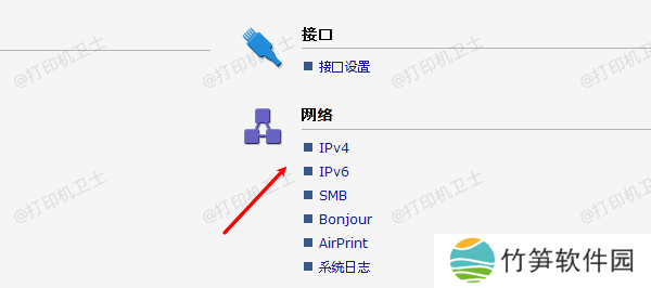 使用控制面板或打印机自带网页(在浏览器输入当前IP地址进入),找到“网络设置”或“TCP/IP设置”选项。