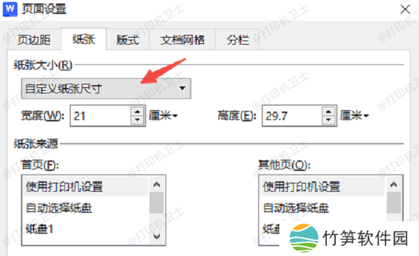 4、完成后,重新启动打印机,再检查打印设置是否与纸张一致(如A4纸选项、横向/纵向方向等)。